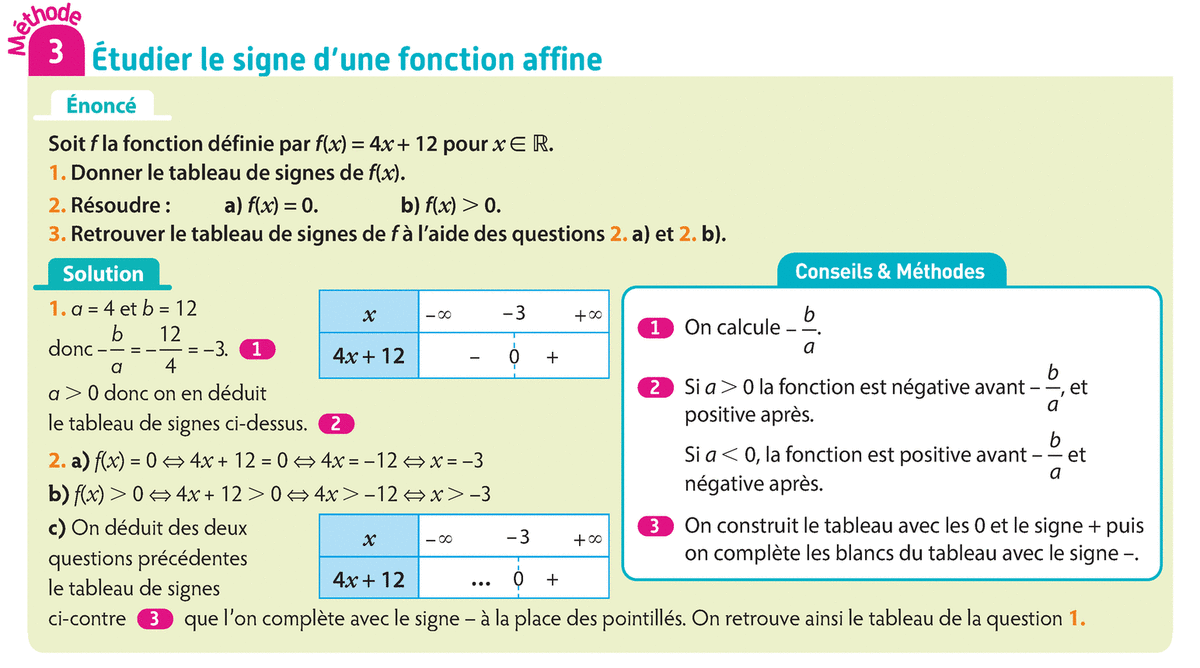 Déterminer le signe d'une fonction affine, à l'aide de la résolution d'une inéquation