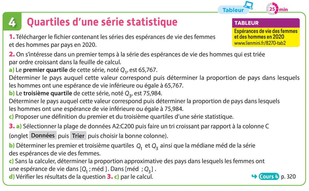 Fichier tableur : espérances de vie des femmes et des hommes en 2020.