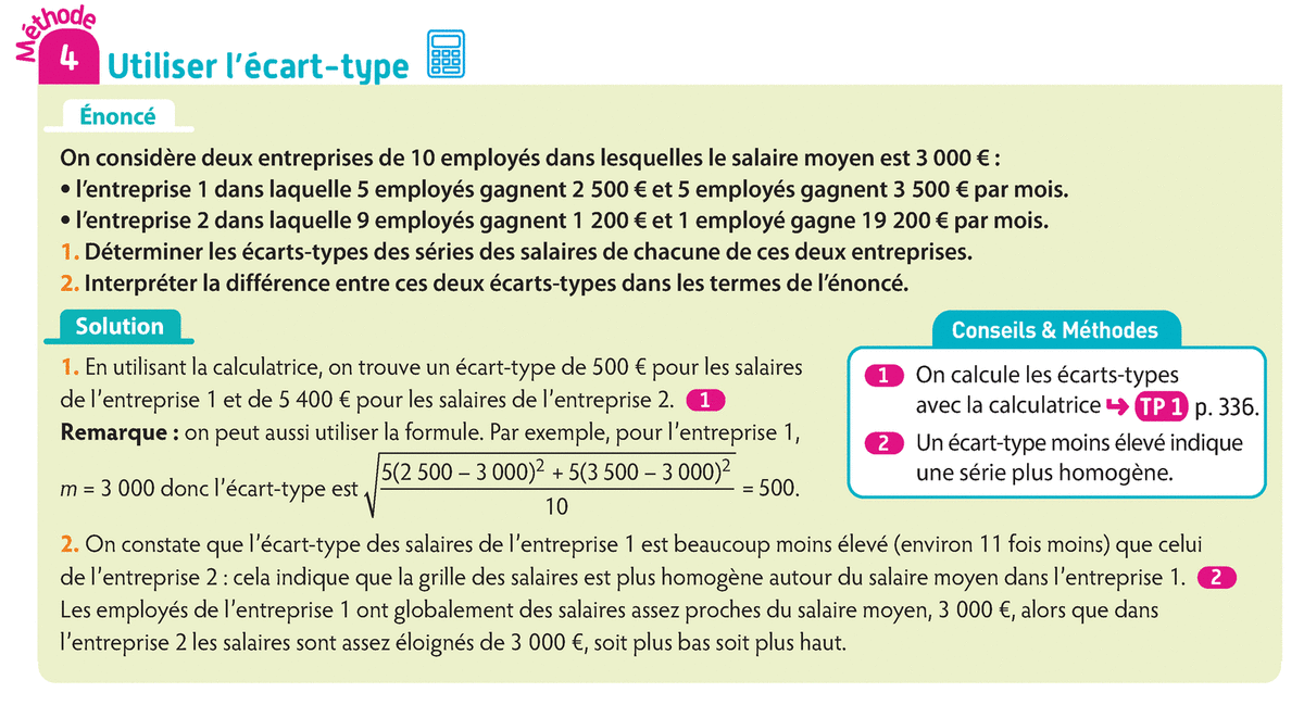 Utiliser l’écart-type d'une série statistique (avec effectifs)