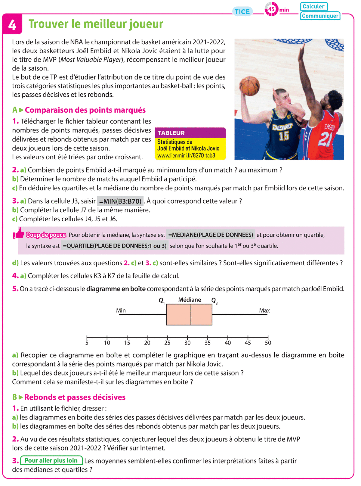 Fichier tableur : statistiques de Joël Embiid et Nikola Jovic.