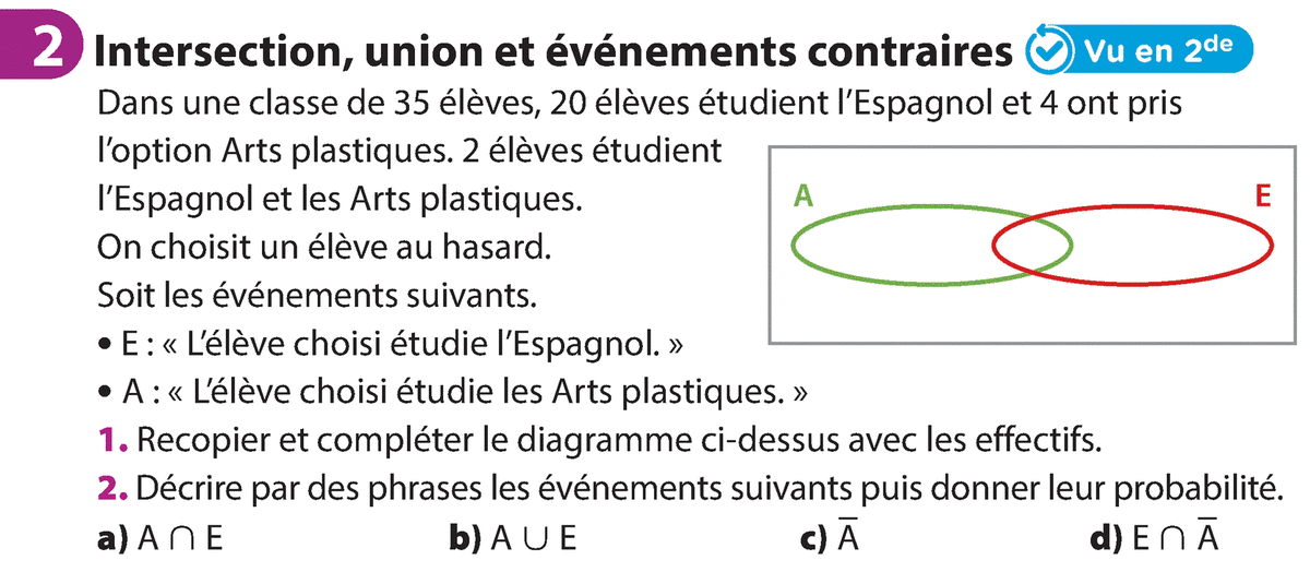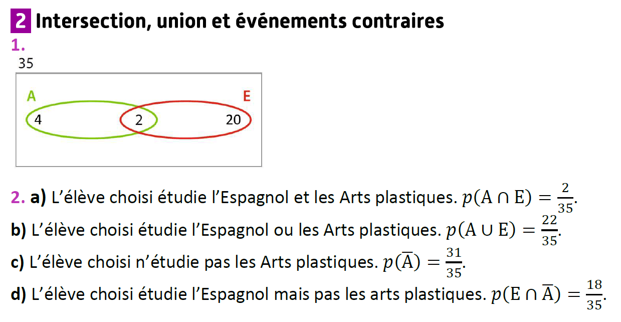 Calculer une probabilité en travaillant avec l’intersection, la réunion et l’événement contraire
