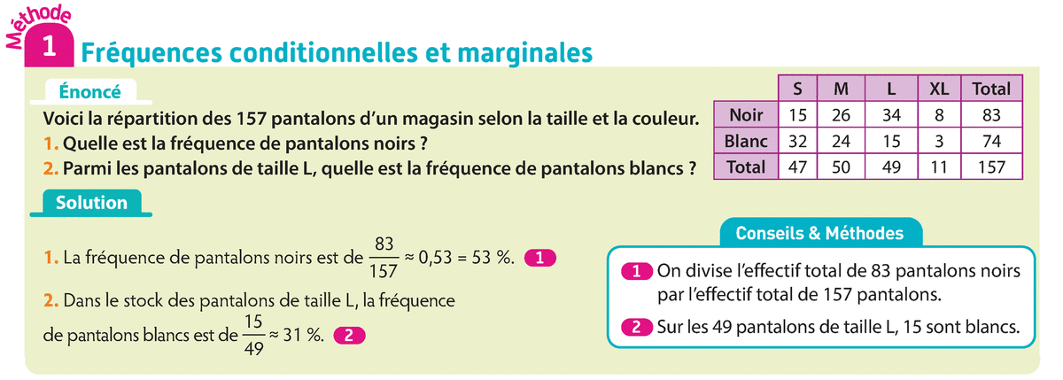 Probabilité conditionnelle à l’aide d’un tableau à double entrée