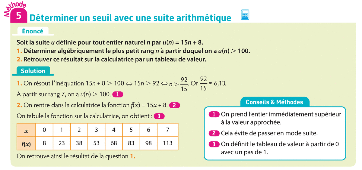 Suite arithmétique : Trouver le seuil, version 1 (raison positive et entière)