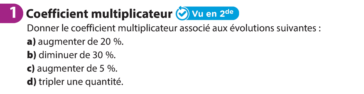 Traduire une évolution en pourcentage par un coefficient multiplicateur et réciproquement