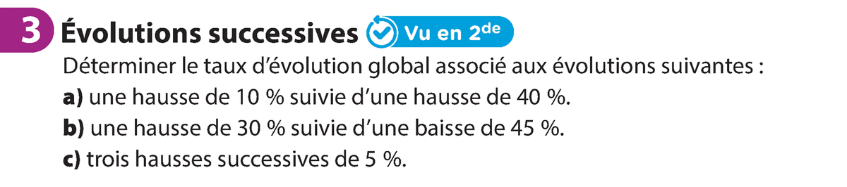 Déterminer un taux d'évolution global à la suite de plusieurs évolutions successives