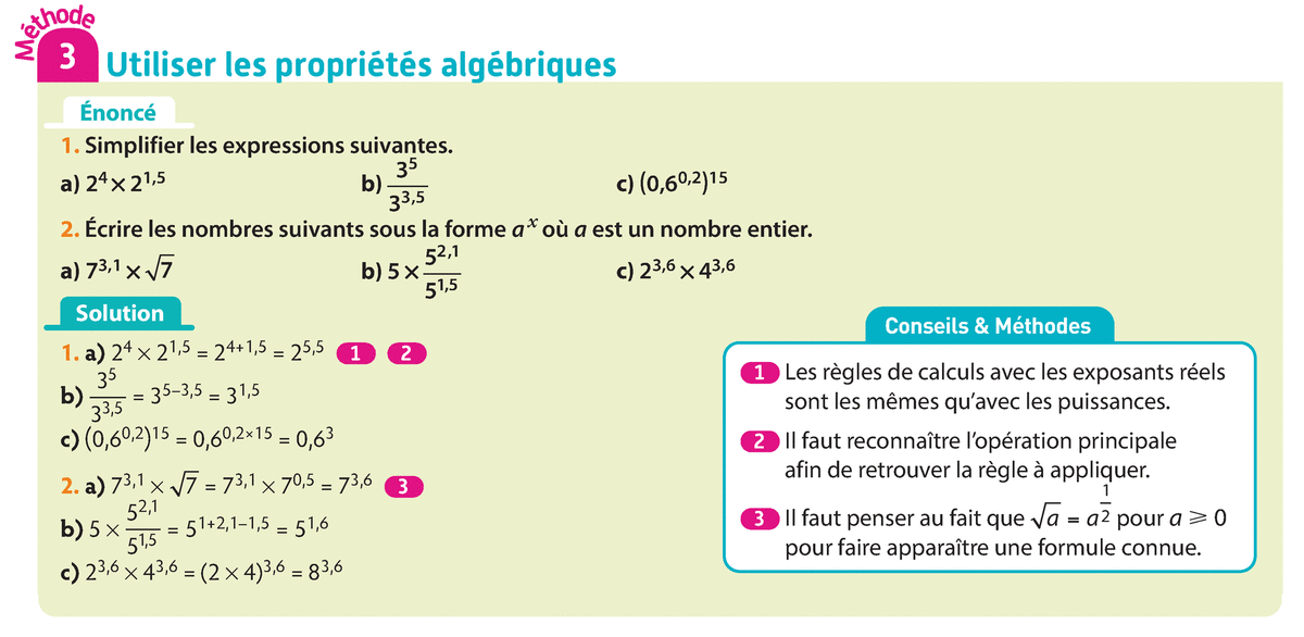 Propriétés algébriques de l’exponentielle de base a (niveau 1)