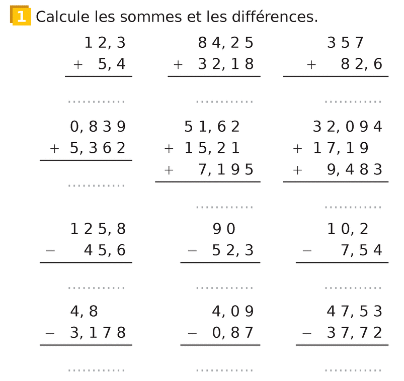 Aide animée : Effectuer une soustraction posée