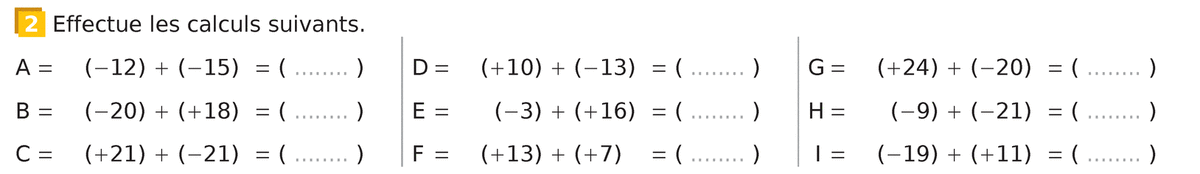 Exercice interactif : Additions d'entiers