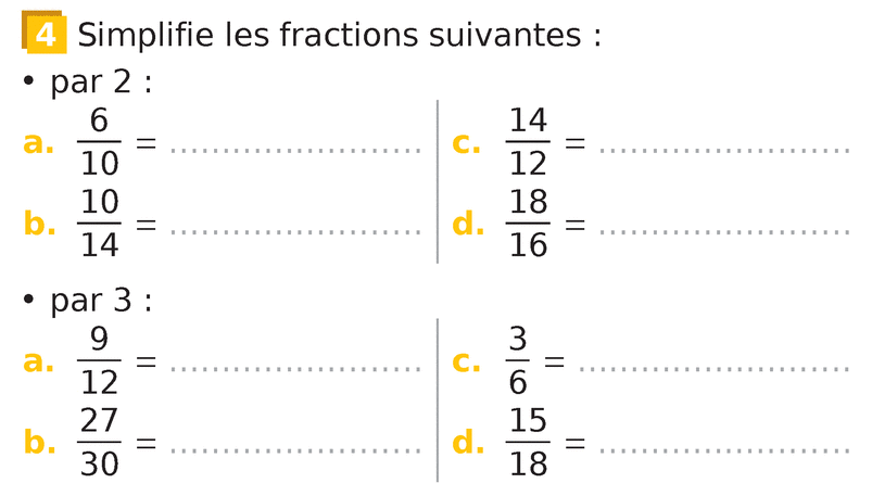 Exercice interactif : Fractions égales (tables)