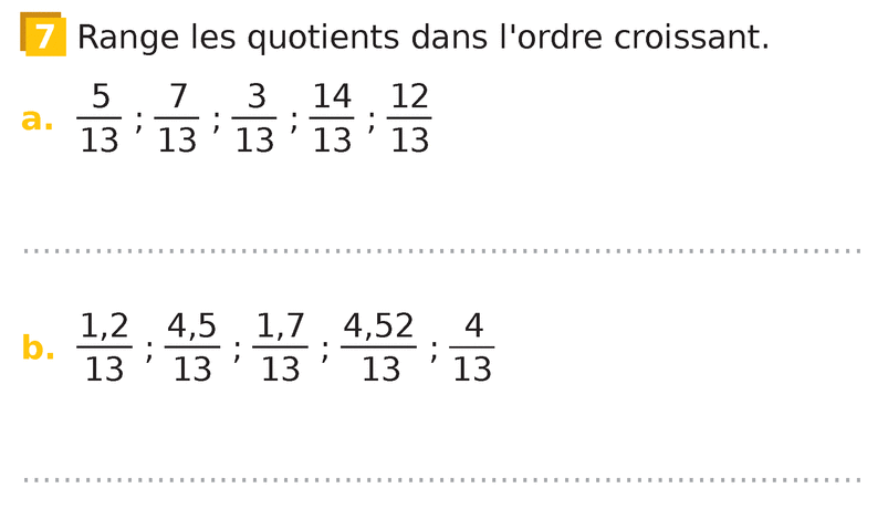 Aide animée : Comparer (même dénominateur ou numérateur)