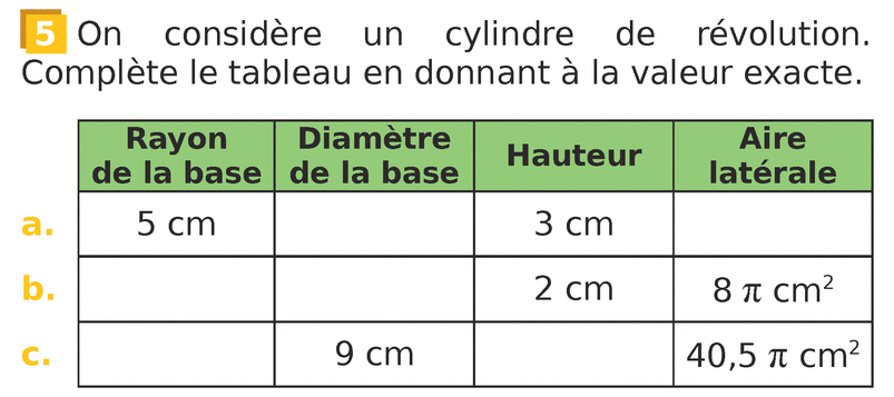 Exercice interactif : Aire latérale d'un cylindre