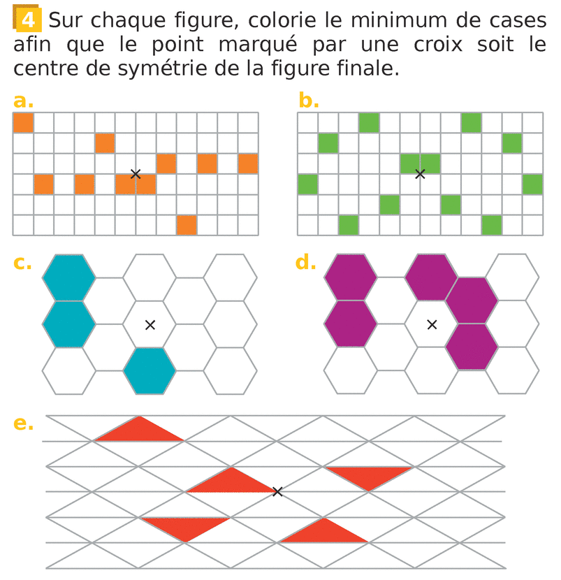 Exercice interactif : Colorier pour avoir un centre de symétrie