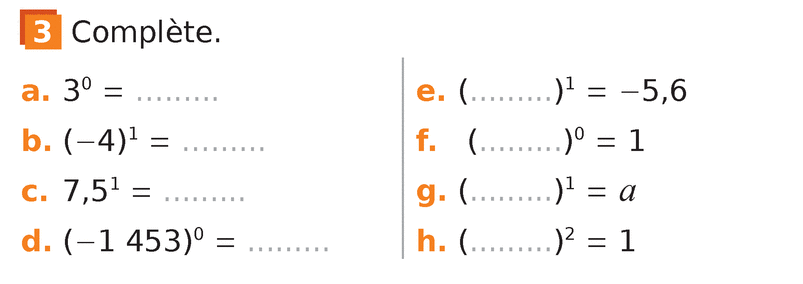Aide animée : Exposants 0 et 1