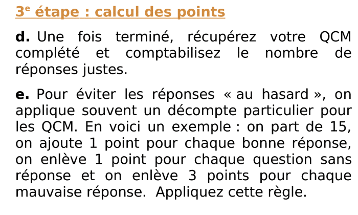 4ème étape de cette activité de groupe proposant à l'élève de construire une feuille de calcul des points obtenus au QCM