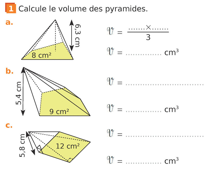 Aide animée : Volume avec l'aire de la base (pyramide)