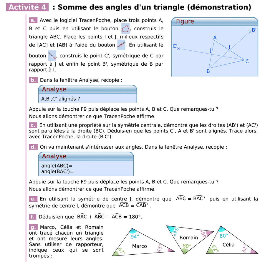 AMI collège : Figure dynamique : somme des angles d'un triangle.