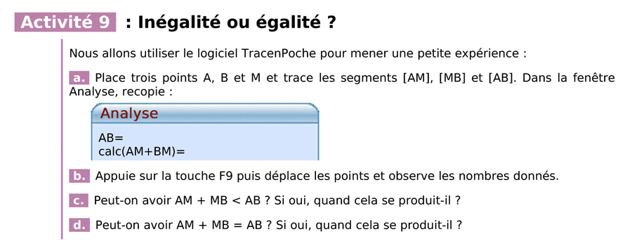 Maintenir le clic gauche et appuyer sur "a" pour faire apparaître la longueur AB et la somme AM+MB