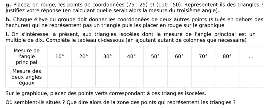 Construction d'un triangle en fonction de son angle le plus petit et de son angle le plus grand ; seule la croix rouge et mobile