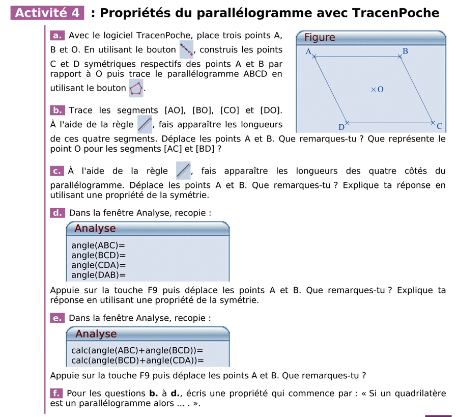 Aide animée : Propriétés des parallélogrammes