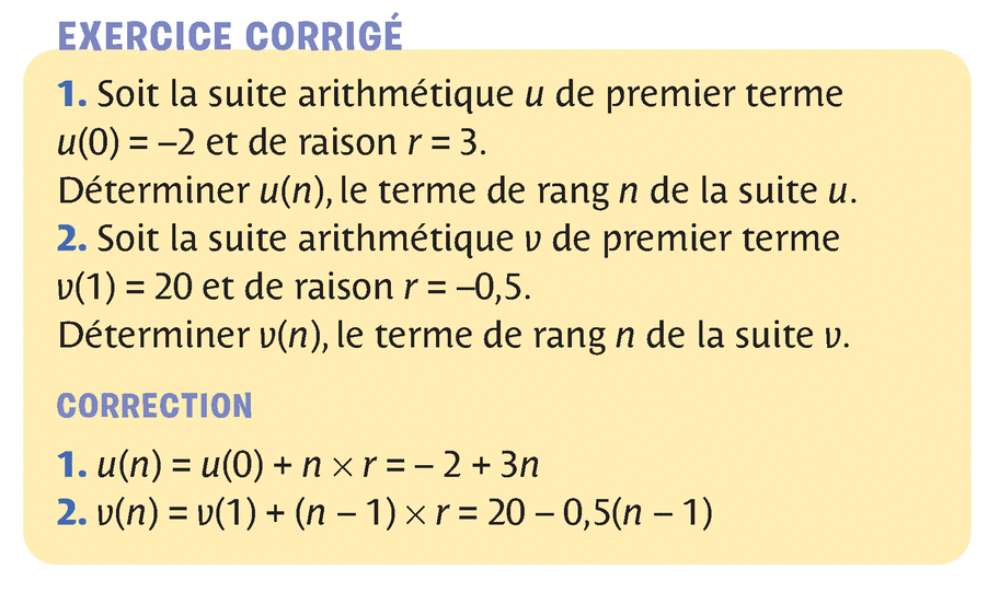 Nature, terme général et calcul d'un terme d'une suite arithmétique