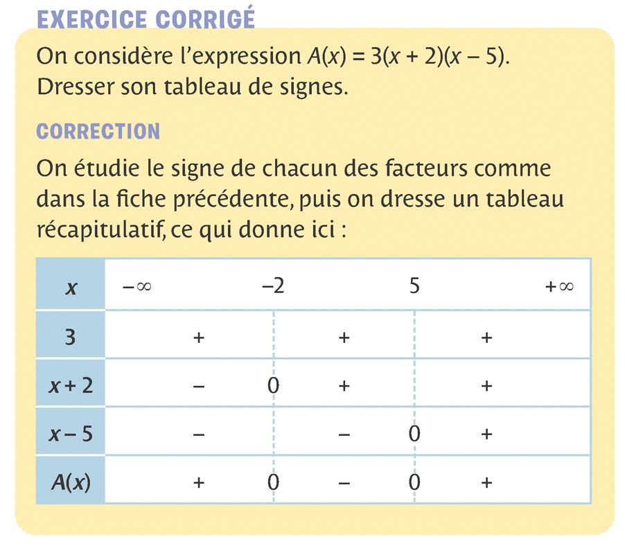 Compléter le tableau de signes d’un produit de deux fonctions affines