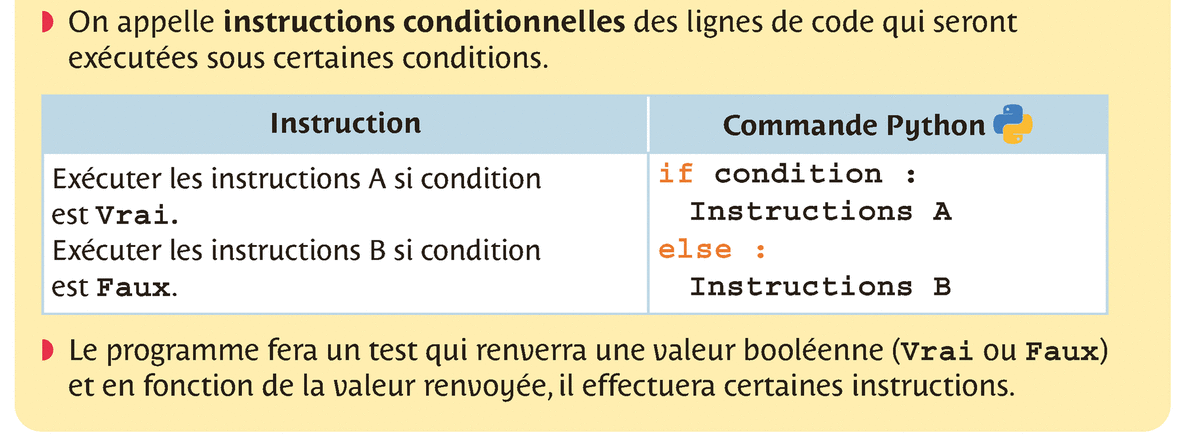 Comprendre une instruction conditionnelle de la forme si … alors … sinon … en python