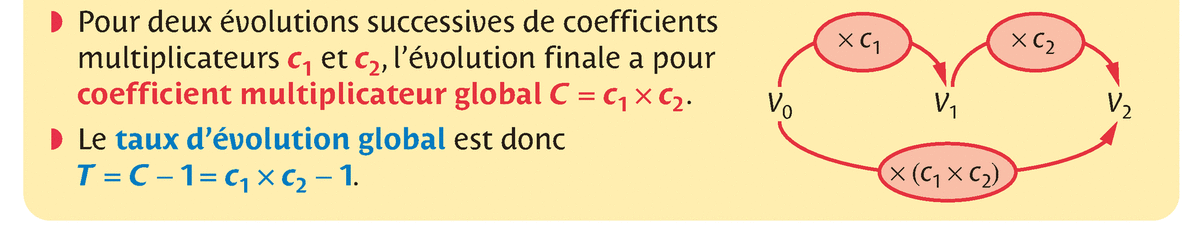 Déterminer un taux d'évolution global à la suite de plusieurs évolutions successives