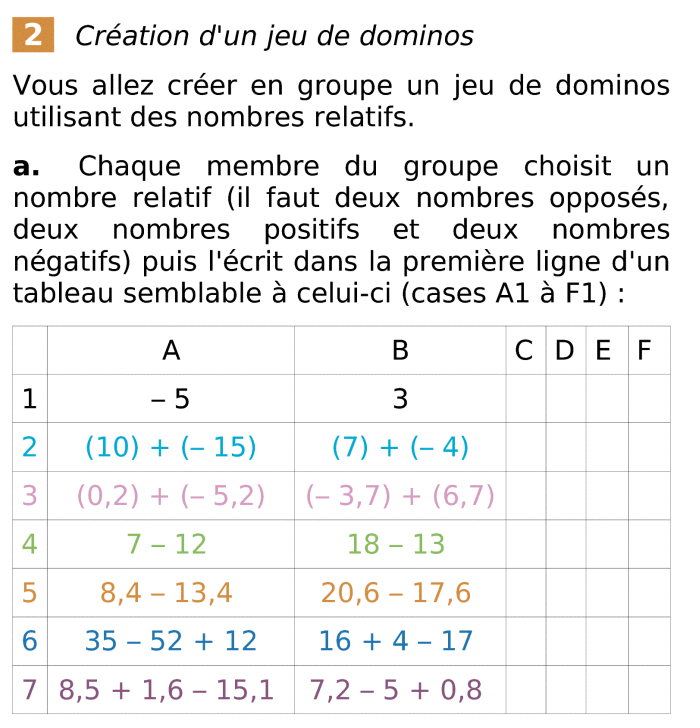 Fiche papier destinée à recevoir la trace écrite et aider à la confection des dominos