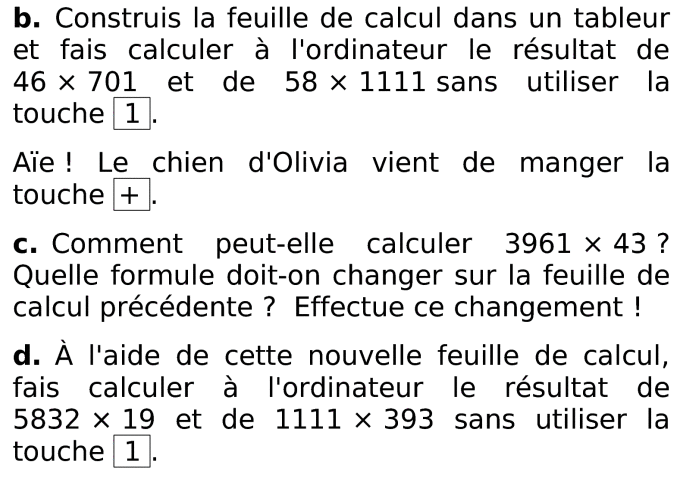 Tableur correspondant aux questions c) et d)