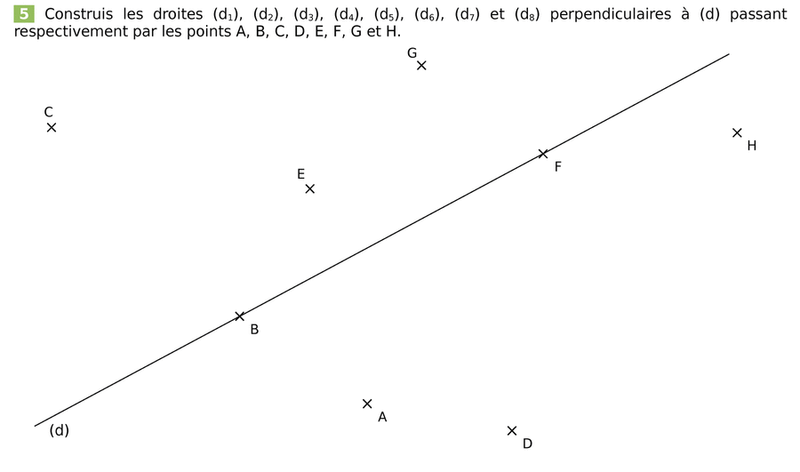 Exercice interactif : Construction de la perpendiculaire en 1 point (avec l'équerre)