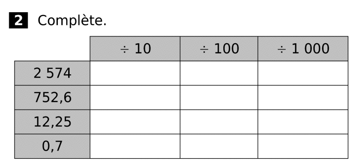 Exercice interactif : Divisions par 10, 100, 1 000, etc.