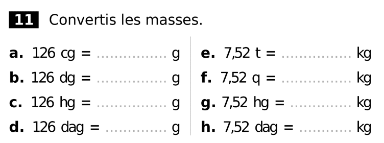 Tableau de conversions.