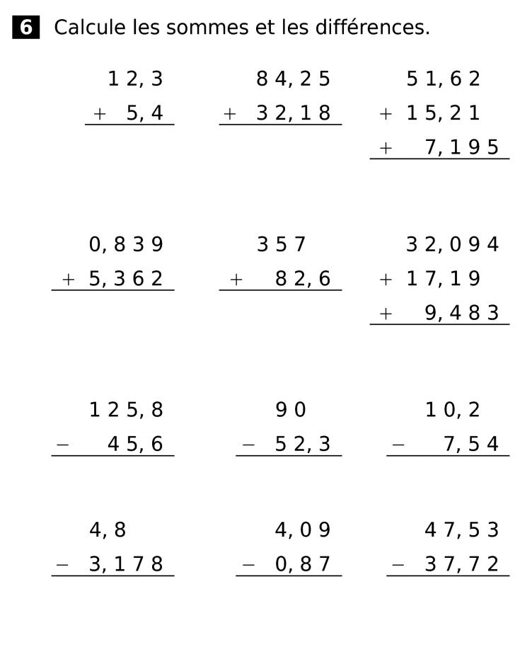 Aide animée : Effectuer une soustraction posée