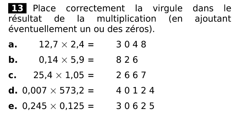 Exercice interactif : Placer la virgule dans le produit