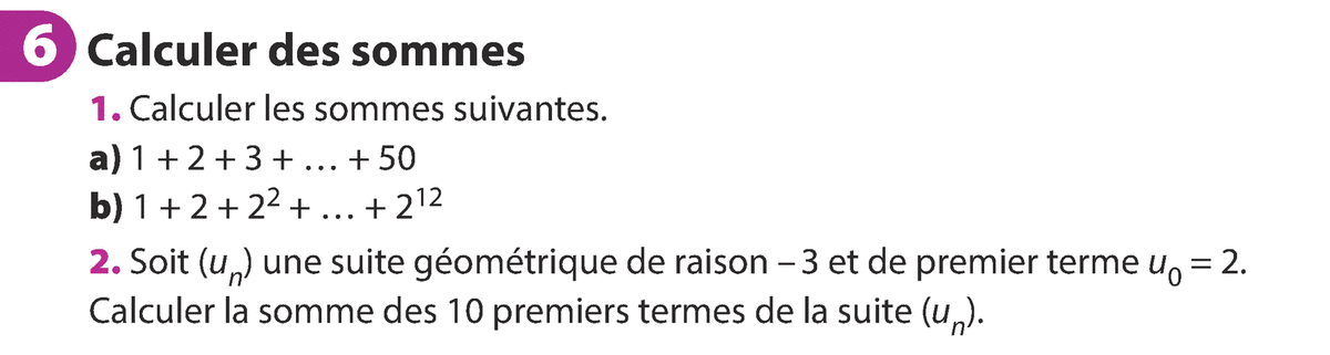 Nature, terme général et somme de termes d'une suite arithmétique ou géométrique