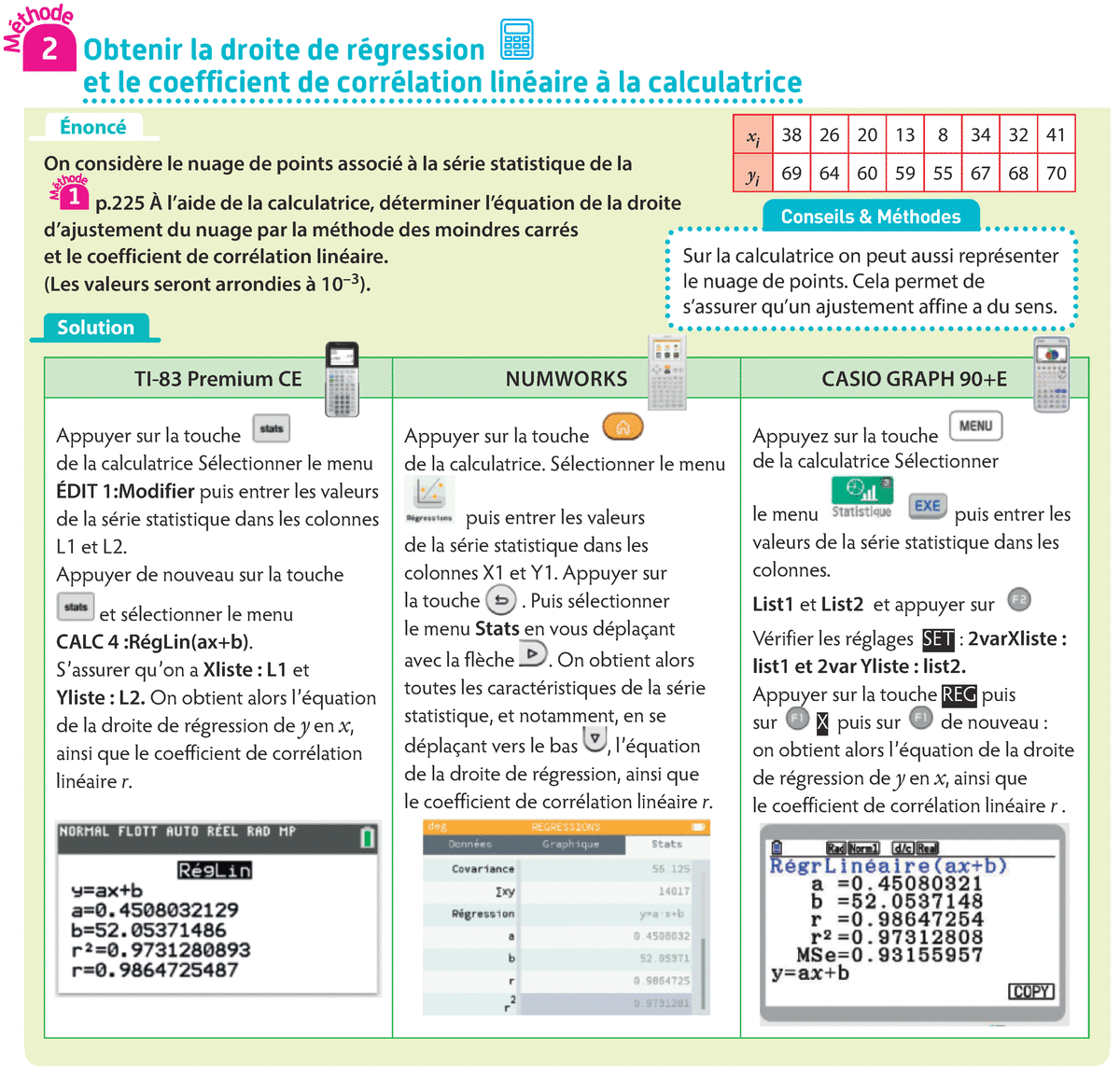 Coefficient de corrélation et droite de régression d'une série statistique double